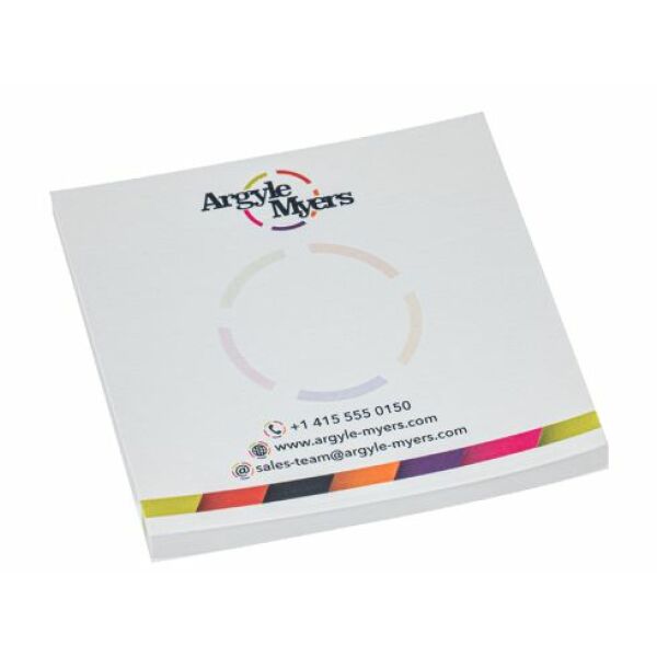 Deze zelfklevende memoblokjes worden volledig bedrukt naar wens en zijn verkrijgbaar in meerdere papierkleuren, waaronder wit, neon, pastel en eco-opties zoals gerecycled papier.