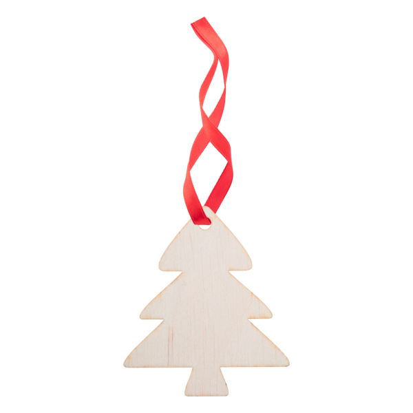 Houten kerstboom versiering van beukenhout. Met rood lint, los geleverd.